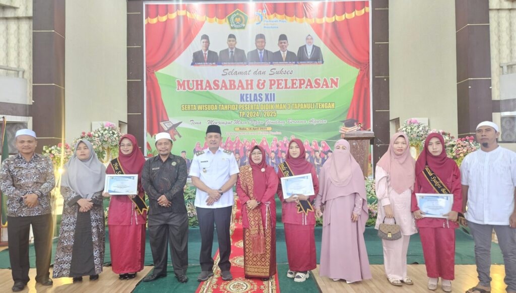 Piagam penghargaan Wisudawan Terbaik di berikan langsung oleh Bapak Wakil Bupati Kabupaten Tapanuli Tengah Mahmud Efendi Lubis, Kepala Kantor Kementerian Agama Kab. Tapanuli Tengah H. Julsukri Mangandar Limbong, S.Ag., MM, dan didampingi Kepala MAN 3 Tapanuli Tengah Hj. Juraida Siregar, S.Ag., M.Pd.
