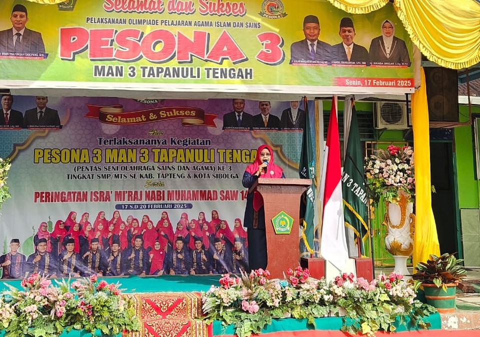Pandan(Humas). Madrasah Aliyah Negeri 3 Tapanuli Tengah menggelar kegiatan penutupan Pentas Seni Olahraga Sains & Agama(PESONA) 3 Tahun 2025 bertempat di Lapangan MAN 3 Tapanuli Tengah, Jumat(21/2). Kegiatan tersebut ditutup secara langsung oleh Kepala Kantor Kementerian Agama Kabupaten Tapanuli Tengah yang diwakili oleh Kasi Pendis Kemenag Tapanuli Tengah Syamsul Simanjuntak, S.Pd MM dengan tanda pemukulan bedug.